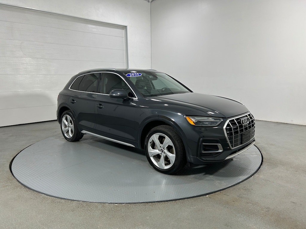Blue Metallic 2021 Audi Q5 45 Premium Plus quattro quattro 7-Speed Automatic S tronic 2.0L Turbocharged Black Leather.