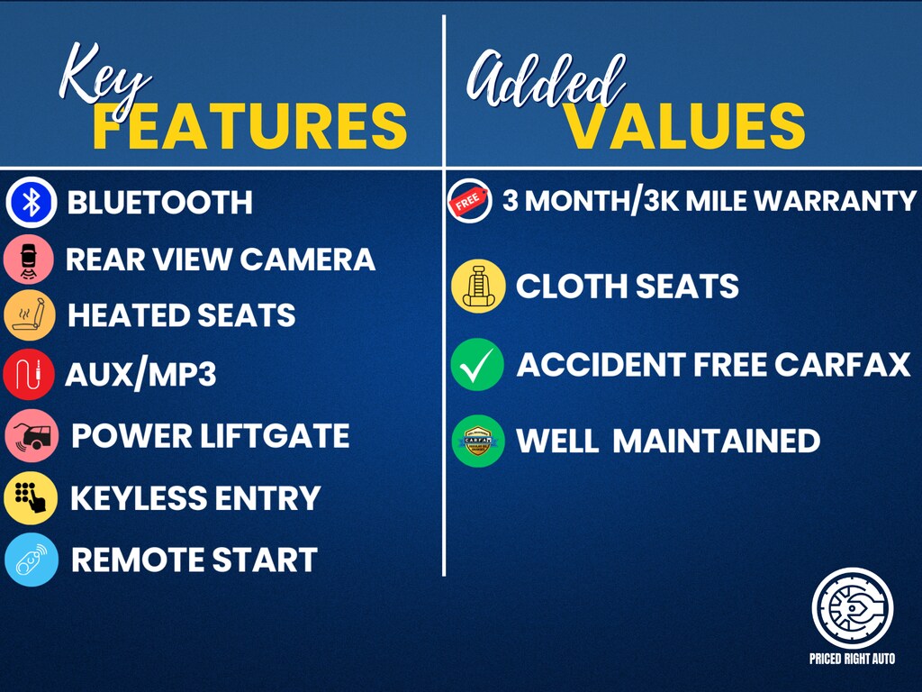 Priced Right Auto strives to provide our customers with a transparent & pressure free environment. The majority of our inventory is purchased from outside of the rust belt allowing us to offer only the cleanest possible vehicles that will look good for years to come (especially when combined with our available rust proofing package). Every vehicle gets a full 40 point safety inspection and any needed repairs are performed by our *ASE Certified Technicians in our full service center! Vehicles 10 years old & newer, with under 150k miles come with a FREE 3 Month 3,000 Mile POWERTRAIN WARRANTY *ON ELIGIBLE VEHICLES! **Cash or Finance** Let us put our financing sources to the test. We have over 20 lenders that help us offer a Guaranteed Credit Approval process! We offer full spectrum financing! Fill out your credit application in person or on our website and get approved today! Visit us at www.PRICEDRIGHTAUTO.org or call us today at 616-319-9825 to confirm vehicle availability and pricing. Come in and enjoy the Priced Right Auto difference! Check out all these great options Front License Plate Bracket Mounting Package, Preferred Equipment Group 1LT, AWD, 3.49 Axle Ratio, 3rd row seats: split-bench, 4-Wheel Disc Brakes, 6 Speakers, 7-Passenger Seating (2-2-3 Seating Configuration), ABS brakes, Air Conditioning, Alloy wheels, AM/FM radio: SiriusXM, Apple CarPlay/Android Auto, Automatic temperature control, Brake assist, Bumpers: body-color, Compass, Delay-off headlights, Driver door bin, Driver vanity mirror, Dual front impact airbags, Dual front side impact airbags, Electronic Stability Control, Emergency communication system: OnStar Guidance, Exterior Parking Camera Rear, Four wheel independent suspension, Front anti-roll bar, Front Bucket Seats, Front Center Armrest, Front dual zone A/C, Front fog lights, Front reading lights, Fully automatic headlights, Garage door transmitter, Heated door mirrors, Heated front seats, High-Intensity Discharge Headlights, Illuminated entry, Low tire pressure warning, Occupant sensing airbag, Outside temperature display, Overhead airbag, Overhead console, Panic alarm, Passenger door bin, Passenger vanity mirror, Power door mirrors, Power driver seat, Power Liftgate, Power steering, Power windows, Premium Cloth Seat Trim, Radio data system, Radio: Chevrolet MyLink AM/FM Stereo w/8" Screen, Rear air conditioning, Rear anti-roll bar, Rear reading lights, Rear window defroster, Rear window wiper, Remote keyless entry, Roof rack: rails only, Security system, SiriusXM Satellite Radio, Speed control, Speed-sensing steering, Spoiler, Steering wheel mounted audio controls, Tachometer, Telescoping steering wheel, Tilt steering wheel, Traction control, Trip computer, Turn signal indicator mirrors, Variably intermittent wipers, Voltmeter, and Wheels: 18" Bright Silver Machined Painted AluM.