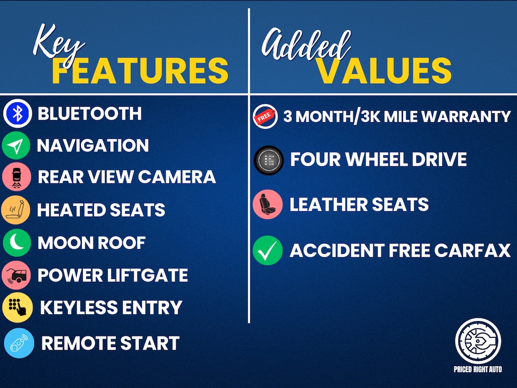 Priced Right Auto strives to provide our customers with a transparent & pressure free environment. The majority of our inventory is purchased from outside of the rust belt allowing us to offer only the cleanest possible vehicles that will look good for years to come (especially when combined with our available rust proofing package). Every vehicle gets a full 40 point safety inspection and any needed repairs are performed by our *ASE Certified Technicians in our full service center! Vehicles 10 years old & newer, with under 150k miles come with a FREE 3 Month 3,000 Mile POWERTRAIN WARRANTY *ON ELIGIBLE VEHICLES! **Cash or Finance** Let us put our financing sources to the test. We have over 20 lenders that help us offer a Guaranteed Credit Approval process! We offer full spectrum financing! Fill out your credit application in person or on our website and get approved today! Visit us at www.PRICEDRIGHTAUTO.org or call us today at 616-319-9825 to confirm vehicle availability and pricing. Come in and enjoy the Priced Right Auto difference! Check out all these great options Enhanced Driver Alert Package (Y86) (Forward Collision Alert, IntelliBeam Headlamps, Lane Keep Assist w/Lane Departure Warning, and Low Speed Forward Automatic Braking), License Plate Front Mounting Package, Magnetic Ride Control Suspension Package, Preferred Equipment Group 1LZ (1st & 2nd Row Color-Keyed Carpeted Floor Mats, 3rd Row 60/40 Power Fold Split-Bench, 4-Wheel Antilock Disc Brakes w/Brake Assist, 5 12-Volt Auxiliary Power Outlets, Auto-Dimming Inside Rear-View Mirror, Black Assist Steps w/Chrome Accent Strip, Bose Centerpoint Premium 10-Speaker Surround Sound, Cargo Net, Color-Keyed Carpeting Floor Covering, Driver Inboard & Front Passenger Airbags, Electronic Cruise Control w/Set & Resume Speed, Floor Console, Fog Lamps, Front & Rear Park Assist, Front Passenger 6-Way Power Seat Adjuster, Hands Free Power Liftgate, Heated & Ventilated Driver & Front Passenger Seats, Heated 2nd Row Seats, Heated Leather Wrapped Steering Wheel, Lane Change Alert w/Side Blind Zone Alert, Memory Settings, Passive Entry System, Power Release 2nd Row Bucket Seats, Power Tilt & Telescopic Steering Column, Power-Adjustable Accelerator & Brake Pedals, Power-Folding Heated Outside Mirrors, Push Button Keyless Start, Rear Cross Traffic Alert, Remote Keyless Entry, Remote Vehicle Start, Roof-Mounted Luggage Rack Side Rails, SiriusXM NavTraffic, SiriusXM Radio, Universal Home Remote, and Wireless Charging), Sun, Entertainment & Destinations Package (Power Sunroof and Rear Seat Blu-Ray/DVD Entertainment System), 4WD, Jet Black Leather, 10 Speakers, 3.08 Rear Axle Ratio, 3rd row seats: split-bench, 4-Wheel Disc Brakes, ABS brakes, Adaptive suspension, Adjustable pedals, Advanced Adaptive Cruise Control, Air Conditioning, Alloy wheels, AM/FM radio: SiriusXM, Apple CarPlay/Android Auto, Auto High-beam Headlights, Auto-dimming door mirrors, Auto-dimming Rear-View mirror, Automatic temperature control, Bluetooth® For Phone, Bodyside moldings, Brake assist, Bumpers: body-color, CD player, Compass, Delay-off headlights, Driver door bin, Driver vanity mirror, Dual front impact airbags, Dual front side impact airbags, Electronic Stability Control, Emergency communication system: OnStar and Chevrolet connected services capable, Enhanced Driver Information Center, Exterior Parking Camera Rear, Forward Automatic Braking, Front anti-roll bar, Front Bucket Seats, Front Center Armrest, Front dual zone A/C, Front fog lights, Front Heated Reclining Bucket Seats, Front reading lights, Front wheel independent suspension, Fully automatic headlights, Garage door transmitter, HD Radio, Head-Up Display, Heated door mirrors, Heated front seats, Heated rear seats, Heat