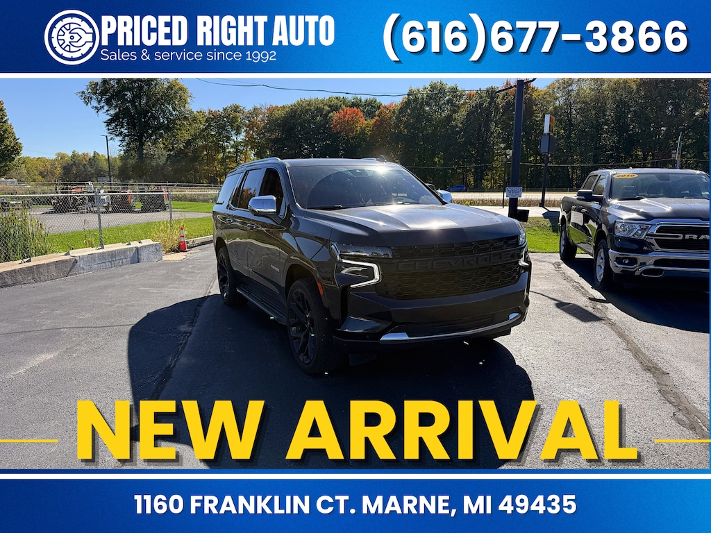 Priced Right Auto strives to provide our customers with a transparent & pressure free environment. The majority of our inventory is purchased from outside of the rust belt allowing us to offer only the cleanest possible vehicles that will look good for years to come (especially when combined with our available rust proofing package). Every vehicle gets a full 40 point safety inspection and any needed repairs are performed by our *ASE Certified Technicians in our full service center! Vehicles 10 years old & newer, with under 150k miles come with a FREE 3 Month 3,000 Mile POWERTRAIN WARRANTY *ON ELIGIBLE VEHICLES! **Cash or Finance** Let us put our financing sources to the test. We have over 20 lenders that help us offer a Guaranteed Credit Approval process! We offer full spectrum financing! Fill out your credit application in person or on our website and get approved today! Visit us at www.PRICEDRIGHTAUTO.org or call us today at 616-677-3866 to confirm vehicle availability and pricing. Come in and enjoy the Priced Right Auto difference! Check out all these great options License Plate Front Mounting Package, Preferred Equipment Group 1LZ (1st & 2nd Row Color-Keyed Carpeted Floor Mats, 2-Speed Active Electronic AutoTrac Transfer Case, 3rd Row 60/40 Power-Folding Split-Bench Seat, Auto-Dimming Inside Rear-View Mirror, Bose 10-Speaker Centerpoint Surround Audio Sys Ft, Bright Front & Rear Door Sill Plates, Chrome Door Handles w/Body-Color Strip, Chrome Mirror Caps, Color-Keyed Carpeting Floor Covering, Driver & Front Outboard Passenger Airbags, Dual Exhaust System, Enhanced Driver Information Center, Floor Console, Hands-Free Rear Power Programmable Liftgate, Heated 2nd Row Outboard Seats, Heated Steering Wheel, Hill Descent Control, Infotainment Display, Lane Change Alert w/Side Blind Zone Alert, LED Daytime Running Lamps, Memory Settings, Outside Heated Power-Adjustable Mirrors, Power Release 2nd Row Bucket Seats, Power Tilt & Telescopic Steering Column, Rear Cross Traffic Alert, Remote Start, Safety Alert Seat, SiriusXM Radio w/360L, Universal Home Remote, Wireless Charging, and Wrapped Steering Wheel), 4WD, Jet Black Leather, 10 Speakers, 20" x 9" Polished Aluminum Wheels, 3.23 Rear Axle Ratio, 3rd row seats: split-bench, 4-Wheel Disc Brakes, ABS brakes, Adaptive suspension, Air Conditioning, Alloy wheels, AM/FM radio: SiriusXM with 360L, Apple CarPlay/Android Auto, Auto High-beam Headlights, Auto-dimming door mirrors, Auto-dimming Rear-View mirror, Auto-leveling suspension, Automatic temperature control, Brake assist, Bumpers: body-color, Compass, Delay-off headlights, Deleted 3 Years of Remote Access, Driver door bin, Driver vanity mirror, Dual front impact airbags, Dual front side impact airbags, Electronic Stability Control, Emergency communication system: OnStar and Chevrolet connected services capable, Four wheel independent suspension, Front anti-roll bar, Front Bucket Seats, Front Center Armrest, Front dual zone A/C, Front High-Back Reclining Bucket Seats, Front reading lights, Fully automatic headlights, Garage door transmitter, Heated & Ventilated Driver & Front Passenger Seats, Heated door mirrors, Heated Driver & Front Passenger Seats, Heated front seats, Heated rear seats, Heated steering wheel, Illuminated entry, Low tire pressure warning, Magnetic Ride Control Suspension, Memory seat, Navigation System, Not Equipped w/4-Way Driver & Fr Pass Pwr Lumbar, Occupant sensing airbag, Outside temperature display, Overhead airbag, Overhead console, Panic alarm, Passenger door bin, Passenger vanity mirror, Perforated Leather Seat Trim, Power door mirrors, Power driver seat, Power Liftgate, Power passenger seat, Power steering, Power windows, Premium audio system: Chevrolet Infotainment 3 Premium, Radio: Chevrolet Infotainment 3 Premium System, Rain sensing wipers, Rear air conditioning, Rear anti-roll bar, Rear reading lights, Rear window defroster, Rear window wiper, Remo