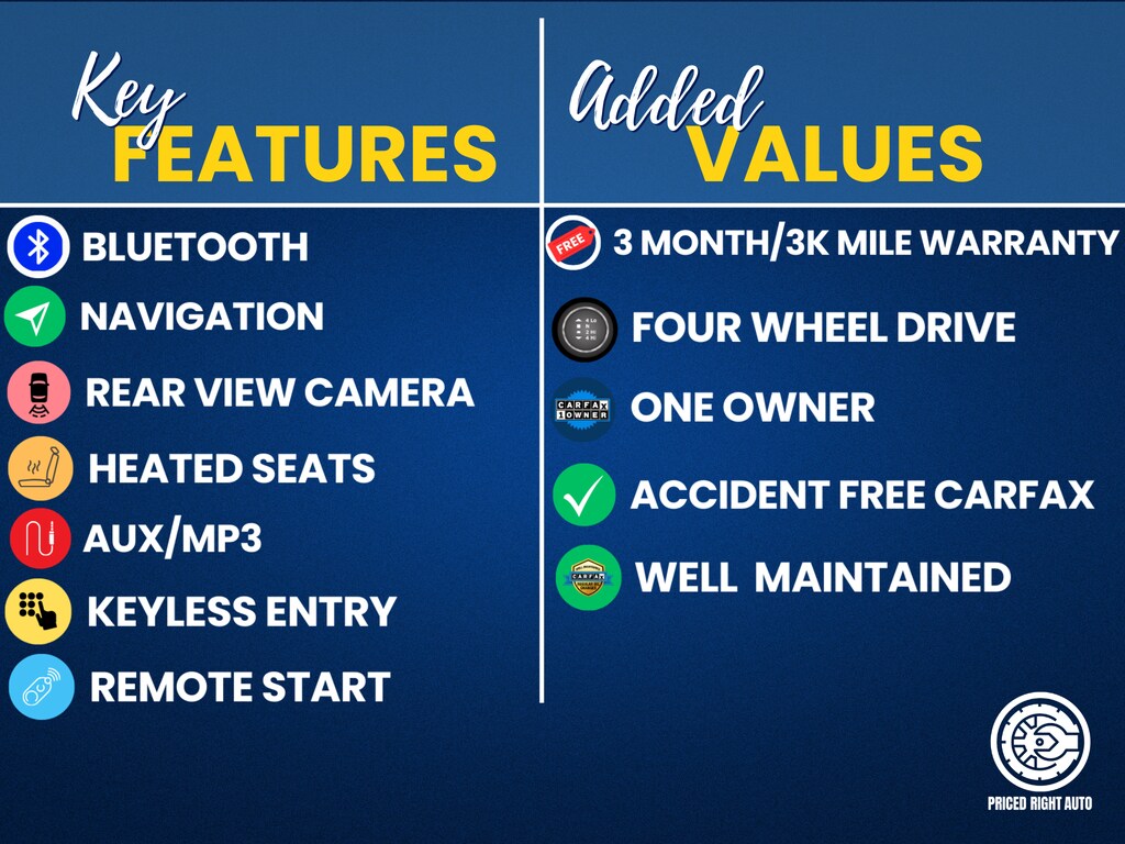 Priced Right Auto strives to provide our customers with a transparent & pressure free environment. The majority of our inventory is purchased from outside of the rust belt allowing us to offer only the cleanest possible vehicles that will look good for years to come (especially when combined with our available rust proofing package). Every vehicle gets a full 40 point safety inspection and any needed repairs are performed by our *ASE Certified Technicians in our full service center! Vehicles 10 years old & newer, with under 150k miles come with a FREE 3 Month 3,000 Mile POWERTRAIN WARRANTY *ON ELIGIBLE VEHICLES! **Cash or Finance** Let us put our financing sources to the test. We have over 20 lenders that help us offer a Guaranteed Credit Approval process! We offer full spectrum financing! Fill out your credit application in person or on our website and get approved today! Visit us at www.PRICEDRIGHTAUTO.org or call us today at 616-319-9825 to confirm vehicle availability and pricing. Come in and enjoy the Priced Right Auto difference!