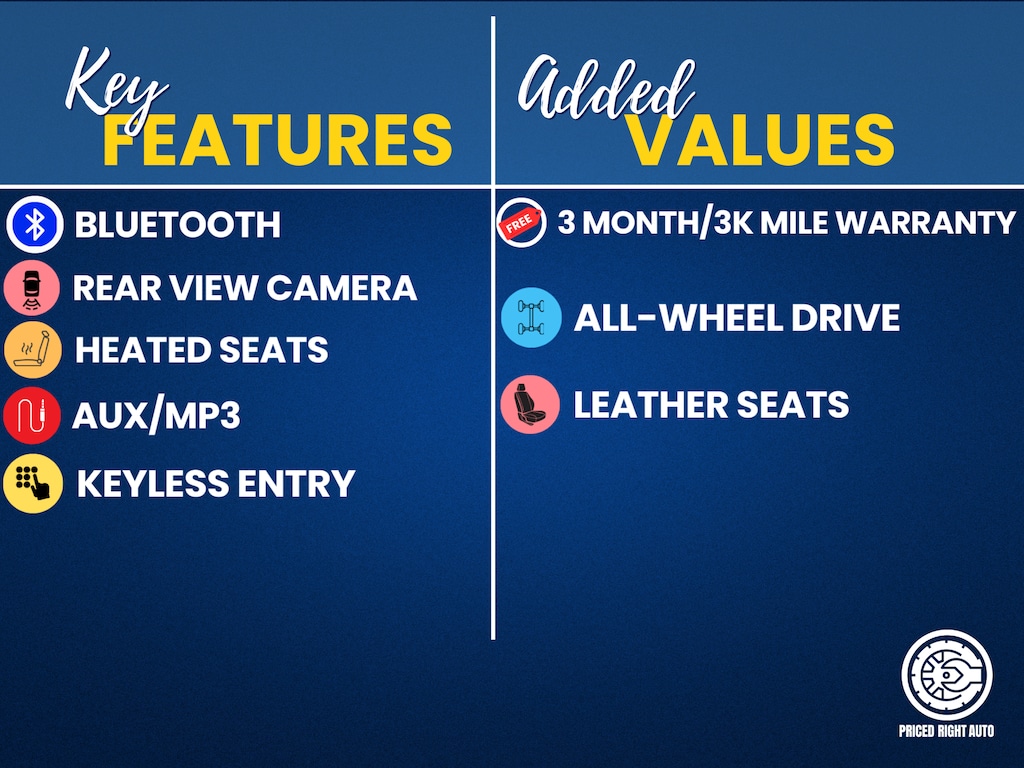 Priced Right Auto strives to provide our customers with a transparent & pressure free environment. The majority of our inventory is purchased from outside of the rust belt allowing us to offer only the cleanest possible vehicles that will look good for years to come (especially when combined with our available rust proofing package). Every vehicle gets a full 40 point safety inspection and any needed repairs are performed by our *ASE Certified Technicians in our full service center! Vehicles 10 years old & newer, with under 150k miles come with a FREE 3 Month 3,000 Mile POWERTRAIN WARRANTY *ON ELIGIBLE VEHICLES! **Cash or Finance** Let us put our financing sources to the test. We have over 20 lenders that help us offer a Guaranteed Credit Approval process! We offer full spectrum financing! Fill out your credit application in person or on our website and get approved today! Visit us at www.PRICEDRIGHTAUTO.org or call us today at 616-319-9825 to confirm vehicle availability and pricing. Come in and enjoy the Priced Right Auto difference! Check out all these great options AWD, 110V/150W AC Power Outlet, 3.80 Axle Ratio, 4-Wheel Disc Brakes, 9 Speakers, ABS brakes, ActiveX Seating Material Heated Bucket Seats, Air Conditioning, Alloy wheels, AM/FM radio: SiriusXM, Auto High-beam Headlights, Auto-dimming Rear-View mirror, Automatic temperature control, Brake assist, Bumpers: body-color, Compass, Delay-off headlights, Driver door bin, Driver vanity mirror, Dual front impact airbags, Dual front side impact airbags, Electronic Stability Control, Emergency communication system: SYNC 3 911 Assist, Foot-Activated Hands-Free Liftgate, FordPass Connect, Four wheel independent suspension, Front anti-roll bar, Front Bucket Seats, Front Center Armrest w/Storage, Front dual zone A/C, Front fog lights, Front License Plate Bracket, Front reading lights, Fully automatic headlights, Heated door mirrors, Heated front seats, Illuminated entry, Knee airbag, Low tire pressure warning, Occupant sensing airbag, Outside temperature display, Overhead airbag, Overhead console, Panic alarm, Passenger door bin, Passenger vanity mirror, Perimeter Alarm, Power door mirrors, Power driver seat, Power passenger seat, Power steering, Power windows, Premium 9 Speaker Audio System, Radio: AM/FM Stereo/MP3 Capable, Rain sensing wipers, Rear anti-roll bar, Rear reading lights, Rear seat center armrest, Rear window defroster, Rear window wiper, Remote keyless entry, Remote Start System, Roof rack: rails only, SiriusXM Radio, Speed control, Speed-Sensitive Wipers, Split folding rear seat, Spoiler, Steering wheel mounted audio controls, SYNC 3 Communications & Entertainment System, Tachometer, Telescoping steering wheel, Tilt steering wheel, Traction control, Trip computer, Turn signal indicator mirrors, Universal Garage Door Opener (UGDO), Variably intermittent wipers, and Wireless Charging PaD.
