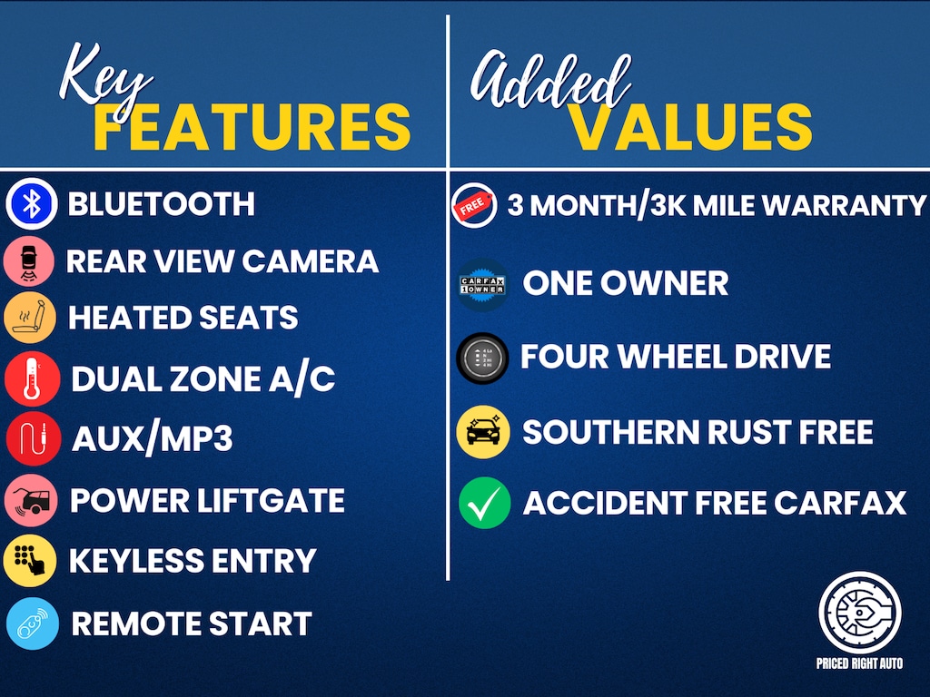 Priced Right Auto strives to provide our customers with a transparent & pressure free environment. The majority of our inventory is purchased from outside of the rust belt allowing us to offer only the cleanest possible vehicles that will look good for years to come (especially when combined with our available rust proofing package). Every vehicle gets a full 40 point safety inspection and any needed repairs are performed by our *ASE Certified Technicians in our full service center! Vehicles 10 years old & newer, with under 150k miles come with a FREE 3 Month 3,000 Mile POWERTRAIN WARRANTY *ON ELIGIBLE VEHICLES! **Cash or Finance** Let us put our financing sources to the test. We have over 20 lenders that help us offer a Guaranteed Credit Approval process! We offer full spectrum financing! Fill out your credit application in person or on our website and get approved today! Visit us at www.PRICEDRIGHTAUTO.org or call us today at 616-319-9825 to confirm vehicle availability and pricing. Come in and enjoy the Priced Right Auto difference! Check out all these great options Equipment Group 301A, AWD, 18" Machined-Face Aluminum Wheels, 3.81 axle ratio, 4-Wheel Disc Brakes, 6 Speakers, ABS brakes, Air Conditioning, Alloy wheels, AM/FM radio: SiriusXM, AM/FM Stereo, Auto High-beam Headlights, Automatic temperature control, Brake assist, Bumpers: body-color, Compass, Delay-off headlights, Driver door bin, Driver vanity mirror, Dual front impact airbags, Dual front side impact airbags, Electronic Stability Control, Emergency communication system: SYNC 3 911 Assist, Exterior Parking Camera Rear, FordPass Connect, Four wheel independent suspension, Front anti-roll bar, Front Bucket Seats, Front Center Armrest, Front fog lights, Front License Plate Bracket, Front reading lights, Fully automatic headlights, Heated ActiveX Front Sport Contour Bucket Seats, Heated door mirrors, Heated front seats, Heated steering wheel, Illuminated entry, Knee airbag, Leather steering wheel, Low tire pressure warning, Memory seat, Occupant sensing airbag, Outside temperature display, Overhead airbag, Overhead console, Panic alarm, Passenger door bin, Passenger vanity mirror, Power door mirrors, Power driver seat, Power Liftgate, Power steering, Power windows, Radio data system, Rear anti-roll bar, Rear reading lights, Rear seat center armrest, Rear window defroster, Rear window wiper, Remote keyless entry, Speed control, Speed-sensing steering, Speed-Sensitive Wipers, Split folding rear seat, Spoiler, Steering wheel mounted audio controls, SYNC 3 Communications & Entertainment System, Tachometer, Telescoping steering wheel, Tilt steering wheel, Traction control, Trip computer, and Variably intermittent wiperS.