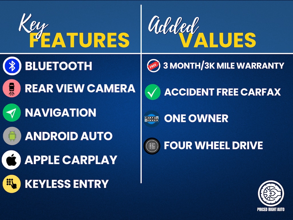 Priced Right Auto strives to provide our customers with a transparent & pressure free environment. The majority of our inventory is purchased from outside of the rust belt allowing us to offer only the cleanest possible vehicles that will look good for years to come (especially when combined with our available rust proofing package). Every vehicle gets a full 40 point safety inspection and any needed repairs are performed by our *ASE Certified Technicians in our full service center! Vehicles 10 years old & newer, with under 150k miles come with a FREE 3 Month 3,000 Mile POWERTRAIN WARRANTY *ON ELIGIBLE VEHICLES! **Cash or Finance** Let us put our financing sources to the test. We have over 20 lenders that help us offer a Guaranteed Credit Approval process! We offer full spectrum financing! Fill out your credit application in person or on our website and get approved today! Visit us at www.PRICEDRIGHTAUTO.org or call us today at 616-319-9825 to confirm vehicle availability and pricing. Come in and enjoy the Priced Right Auto difference! Check out all these great options Equipment Group 200A, 18" Machined-Face Aluminum Wheels, 1st & 2nd Row Floor Liners, 20" Polished Aluminum Wheels, 3.31 Axle Ratio, 3rd row seats: split-bench, 4-Wheel Disc Brakes, 6 Speakers, ABS brakes, Air Conditioning, Alloy wheels, AM/FM radio: SiriusXM, Auto High-beam Headlights, Auto-dimming Rear-View mirror, Automatic temperature control, Brake assist, Bumpers: body-color, Cloth Front Captain's Chairs, Compass, Delay-off headlights, Driver door bin, Driver vanity mirror, Dual front impact airbags, Dual front side impact airbags, Electronic Stability Control, Emergency communication system: SYNC 3 911 Assist, Exterior Parking Camera Rear, Four wheel independent suspension, Front anti-roll bar, Front Bucket Seats, Front Center Armrest, Front dual zone A/C, Front fog lights, Front reading lights, Fully automatic headlights, Garage door transmitter, Heated door mirrors, Illuminated entry, Leather steering wheel, Low tire pressure warning, Occupant sensing airbag, Outside temperature display, Overhead airbag, Overhead console, Panic alarm, Passenger door bin, Passenger vanity mirror, Power door mirrors, Power driver seat, Power steering, Power windows, Radio data system, Radio: AM/FM Stereo w/MP3 Capable, Rear air conditioning, Rear anti-roll bar, Rear reading lights, Rear window defroster, Rear window wiper, Reclining 3rd row seat, Remote keyless entry, Roof rack: rails only, Security system, SiriusXM Satellite Radio, Speed control, Speed-sensing steering, Speed-Sensitive Wipers, Split folding rear seat, Steering wheel mounted audio controls, SYNC 3 Communications & Entertainment System, Tachometer, Telescoping steering wheel, Tilt steering wheel, Traction control, Trip computer, Variably intermittent wipers, and VoltmeteR.