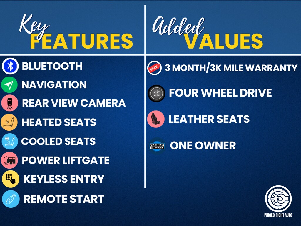 Priced Right Auto strives to provide our customers with a transparent & pressure free environment. The majority of our inventory is purchased from outside of the rust belt allowing us to offer only the cleanest possible vehicles that will look good for years to come (especially when combined with our available rust proofing package). Every vehicle gets a full 40 point safety inspection and any needed repairs are performed by our *ASE Certified Technicians in our full service center! Vehicles 10 years old & newer, with under 150k miles come with a FREE 3 Month 3,000 Mile POWERTRAIN WARRANTY *ON ELIGIBLE VEHICLES! **Cash or Finance** Let us put our financing sources to the test. We have over 20 lenders that help us offer a Guaranteed Credit Approval process! We offer full spectrum financing! Fill out your credit application in person or on our website and get approved today! Visit us at www.PRICEDRIGHTAUTO.org or call us today at 616-319-9825 to confirm vehicle availability and pricing. Come in and enjoy the Priced Right Auto difference! Check out all these great options Class IV Trailer Tow Package, Equipment Group 301A, Limited Convenience Package (110V/150W AC Power Outlet, 3rd Row PowerFold Seat, Memory Driver's Seat, Power Tilt/Telescoping Steering Column, and Sideview Mirrors w/Gloss Black Caps), Limited Technology Package (10.1" LCD Capacitive Portrait Touchscreen and 2 Additional Speakers), 4WD, 12 Speakers, 20" Premium Painted Aluminum Wheels, 3.58 Non-Limited-Slip Rear Axle Ratio, 360-Degree Camera Credit, 3rd row seats: bench, 4-Wheel Disc Brakes, 4G LTE Wi-Fi Hotspot Credit, ABS brakes, Air Conditioning, Alloy wheels, AM/FM radio: SiriusXM, Auto High-beam Headlights, Auto-dimming Rear-View mirror, Automatic temperature control, Brake assist, Bumpers: body-color, Compass, Delay-off headlights, Driver door bin, Driver vanity mirror, Dual front impact airbags, Dual front side impact airbags, Electronic Stability Control, Emergency communication system: SYNC 3 911 Assist, Exterior Parking Camera Rear, FordPass Connect, Four wheel independent suspension, Front & Second Row Floor Liners (16B), Front anti-roll bar, Front Bucket Seats, Front Center Armrest, Front dual zone A/C, Front fog lights, Front reading lights, Fully automatic headlights, Garage door transmitter, Heated door mirrors, Heated front seats, Heated rear seats, Heated steering wheel, Illuminated entry, Knee airbag, Leather Heated/Ventilated Captain's Chairs, Leather steering wheel, Low tire pressure warning, Navigation System, Occupant sensing airbag, Outside temperature display, Overhead airbag, Overhead console, Panic alarm, Passenger door bin, Passenger vanity mirror, Power door mirrors, Power driver seat, Power Liftgate, Power passenger seat, Power steering, Power windows, Radio data system, Radio: B&O Sound System by Bang & Olufsen, Rain sensing wipers, Rear air conditioning, Rear anti-roll bar, Rear reading lights, Rear window defroster, Rear window wiper, Remote keyless entry, Roof rack: rails only, Security system, Speed control, Speed-sensing steering, Speed-Sensitive Wipers, Split folding rear seat, Spoiler, Steering wheel mounted audio controls, SYNC 3 Communications & Entertainment System, SYNC 3/Apple CarPlay/Android Auto, Tachometer, Telescoping steering wheel, Tilt steering wheel, Traction control, Trip computer, Twin Panel Moonroof, Variably intermittent wipers, Ventilated front seats, and Voice-Activated Touchscreen Navigation SysteM.