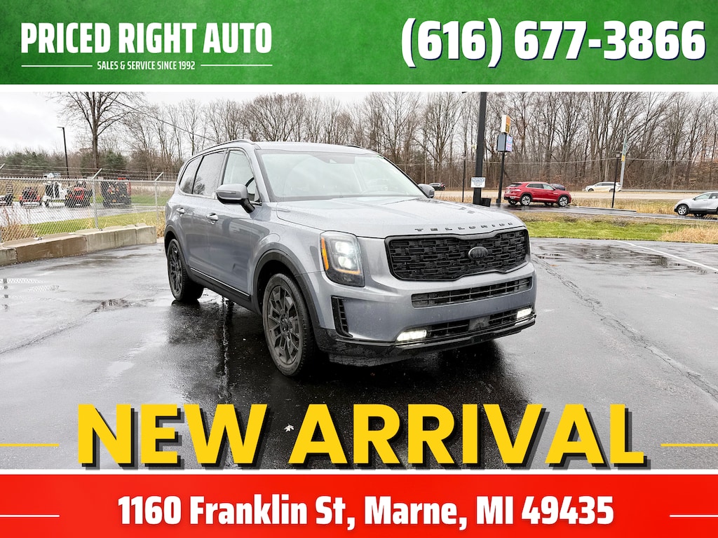 Priced Right Auto strives to provide our customers with a transparent & pressure free environment. The majority of our inventory is purchased from outside of the rust belt allowing us to offer only the cleanest possible vehicles that will look good for years to come (especially when combined with our available rust proofing package). Every vehicle gets a full 40 point safety inspection and any needed repairs are performed by our *ASE Certified Technicians in our full service center! Vehicles 10 years old & newer, with under 150k miles come with a FREE 3 Month 3,000 Mile POWERTRAIN WARRANTY *ON ELIGIBLE VEHICLES! **Cash or Finance** Let us put our financing sources to the test. We have over 20 lenders that help us offer a Guaranteed Credit Approval process! We offer full spectrum financing! Fill out your credit application in person or on our website and get approved today! Visit us at www.PRICEDRIGHTAUTO.org or call us today at 616-677-3866 to confirm vehicle availability and pricing. Come in and enjoy the Priced Right Auto difference! Check out all these great options Nightfall Edition Package (Black Finish Radiator Grille, Body Color Exterior Door Handles, Exclusive Black Fog Light Bezel, Exclusive Black Headlight Bezels, Front & Rear Gloss Black Finish Bumper Skid Plates, Front & Rear KIA Logo, Gloss Black Finish Exterior Emblems, Gloss Black Finish Front & Rear Door Garnish, Gloss Black Finish Roof Rails, and Wheels: 7.5" x 20" Exclusive Black Finish Alloy), SX Prestige Package (110V Inverter, Heads-Up Display, Heated & Ventilated 2nd Row Seats, Premium Cloth Headliner & Pillar Trim, Premium Nappa Leather Seat Trim, and Rain-Sensing Front Windshield Wipers), 10 Speakers, 3.648 Axle Ratio, 3rd row seats: split-bench, 4-Wheel Disc Brakes, ABS brakes, Air Conditioning, Alloy wheels, AM/FM radio: SiriusXM, Apple CarPlay & Android Auto, Auto High-beam Headlights, Auto-dimming Rear-View mirror, Automatic temperature control, Brake assist, Bumpers: body-color, Carpeted Floor Mats, Compass, Delay-off headlights, Driver door bin, Driver vanity mirror, Dual front impact airbags, Dual front side impact airbags, Electronic Stability Control, Emergency communication system: 911 Connect, Four wheel independent suspension, Front anti-roll bar, Front Bucket Seats, Front Center Armrest, Front dual zone A/C, Front fog lights, Front reading lights, Fully automatic headlights, Garage door transmitter: HomeLink, Heated & Ventilated Front Bucket Seats, Heated door mirrors, Heated front seats, Heated steering wheel, Illuminated entry, Knee airbag, Leather Seat Trim, Leather Shift Knob, Leather steering wheel, Low tire pressure warning, Memory seat, Multicolored Interior Light Kit, Navigation System, Occupant sensing airbag, Outside temperature display, Overhead airbag, Overhead console, Panic alarm, Passenger door bin, Passenger vanity mirror, Power door mirrors, Power driver seat, Power Liftgate, Power moonroof, Power passenger seat, Power steering, Power windows, Radio data system, Radio: AM/FM/SIRIUS Premium Audio, Rear air conditioning, Rear anti-roll bar, Rear audio controls, Rear reading lights, Rear window defroster, Rear window wiper, Reclining 3rd row seat, Remote keyless entry, Roof rack: rails only, Security system, Smart Key w/ Push Button and Remote Start, Speed control, Speed-sensing steering, Split folding rear seat, Spoiler, Steering wheel mounted audio controls, Tachometer, Telescoping steering wheel, Tilt steering wheel, Traction control, Trip computer, Turn signal indicator mirrors, Variably intermittent wipers, Ventilated front seats, and Wheels: 7.5" x 20" Black Finish AlloY.