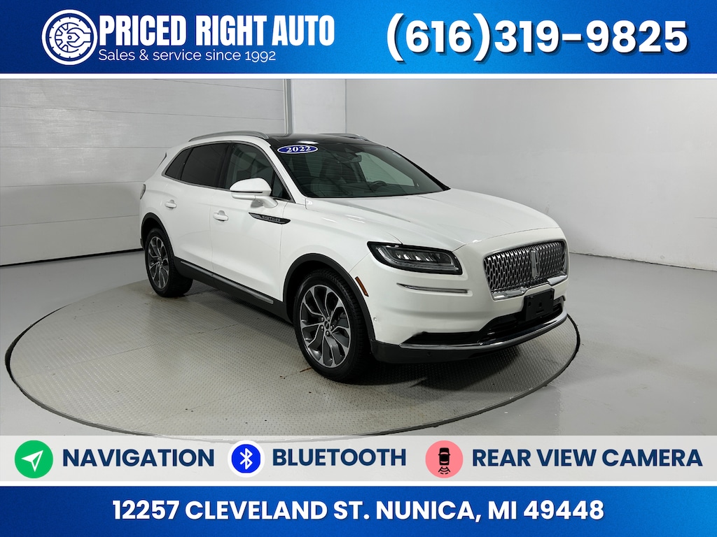 Priced Right Auto strives to provide our customers with a transparent & pressure free environment. The majority of our inventory is purchased from outside of the rust belt allowing us to offer only the cleanest possible vehicles that will look good for years to come (especially when combined with our available rust proofing package). Every vehicle gets a full 40 point safety inspection and any needed repairs are performed by our *ASE Certified Technicians in our full service center! Vehicles 10 years old & newer, with under 150k miles come with a FREE 3 Month 3,000 Mile POWERTRAIN WARRANTY *ON ELIGIBLE VEHICLES! **Cash or Finance** Let us put our financing sources to the test. We have over 20 lenders that help us offer a Guaranteed Credit Approval process! We offer full spectrum financing! Fill out your credit application in person or on our website and get approved today! Visit us at www.PRICEDRIGHTAUTO.org or call us today at 616-319-9825 to confirm vehicle availability and pricing. Come in and enjoy the Priced Right Auto difference! Check out all these great options Equipment Group 200A, Lincoln Co-Pilot360 1.0 Plus Package (360 Degree Camera w/Rear Camera Wash, Active Park Assist 2.0, Adaptive Cruise Control, Distance Indication & Alert, Evasive Steering Assist, and Forward-Side-Rear Parking Sensors), 10 Speakers, 3.80 Axle Ratio, 4-Wheel Disc Brakes, ABS brakes, Air Conditioning, Alexa Built-In, Alloy wheels, AM/FM radio: SiriusXM with 360L, Auto High-beam Headlights, Auto tilt-away steering wheel, Auto-dimming door mirrors, Auto-dimming Rear-View mirror, Automatic temperature control, Brake assist, Bumpers: body-color, Compass, Delay-off headlights, Driver door bin, Driver vanity mirror, Dual front impact airbags, Dual front side impact airbags, Electronic Stability Control, Emergency communication system: 911 Assist, Four wheel independent suspension, Front anti-roll bar, Front Bucket Seats, Front Center Armrest w/Storage, Front dual zone A/C, Front License Plate Bracket, Front reading lights, Fully automatic headlights, Garage door transmitter: HomeLink, Heated door mirrors, Heated front seats, Heated rear seats, Heated steering wheel, Illuminated entry, Knee airbag, Leather steering wheel, Linear Brushed Aluminum Applique, Low tire pressure warning, Memory seat, Navigation System, Occupant sensing airbag, Outside temperature display, Overhead airbag, Overhead console, Panic alarm, Passenger door bin, Passenger vanity mirror, Power door mirrors, Power driver seat, Power Liftgate, Power moonroof: Panoramic Vista Roof, Power passenger seat, Power steering, Power windows, Prem Lthr-Trimmed Heated/Ventilated Captain Seats, Radio data system, Radio: AM/FM/HD Audio System, Rain sensing wipers, Rear anti-roll bar, Rear reading lights, Rear seat center armrest, Rear window defroster, Rear window wiper, Remote keyless entry, Satin Roof Rack Side Rails w/o Crossbars, Security system, Speed control, Speed-sensing steering, Speed-Sensitive Wipers, Split folding rear seat, Spoiler, Steering wheel memory, Steering wheel mounted A/C controls, Steering wheel mounted audio controls, SYNC 4 w/Enhanced Voice Recognition, Tachometer, Telescoping steering wheel, Tilt steering wheel, Traction control, Trip computer, Turn signal indicator mirrors, Variably intermittent wipers, Ventilated front seats, Wheels: 18" Premium Painted Bright Machined Alum, and Wheels: 20" Prem Painted Bright Machined AluminuM.