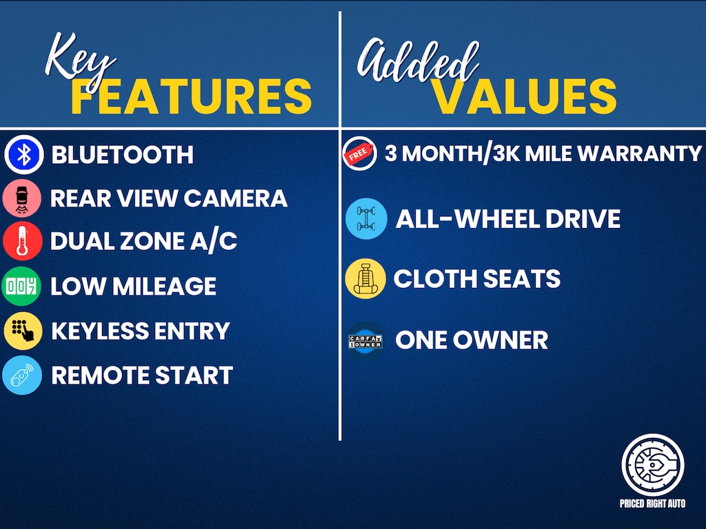 Priced Right Auto strives to provide our customers with a transparent & pressure free environment. The majority of our inventory is purchased from outside of the rust belt allowing us to offer only the cleanest possible vehicles that will look good for years to come (especially when combined with our available rust proofing package). Every vehicle gets a full 40 point safety inspection and any needed repairs are performed by our *ASE Certified Technicians in our full service center! Vehicles 10 years old & newer, with under 150k miles come with a FREE 3 Month 3,000 Mile POWERTRAIN WARRANTY *ON ELIGIBLE VEHICLES! **Cash or Finance** Let us put our financing sources to the test. We have over 20 lenders that help us offer a Guaranteed Credit Approval process! We offer full spectrum financing! Fill out your credit application in person or on our website and get approved today! Visit us at www.PRICEDRIGHTAUTO.org or call us today at 616-319-9825 to confirm vehicle availability and pricing. Come in and enjoy the Priced Right Auto difference! Check out all these great options AWD, 18" Aluminum Alloy Wheels, 4-Wheel Disc Brakes, 5.604 Axle Ratio, 6 Speakers, ABS brakes, Air Conditioning, Alloy wheels, AM/FM Radio, AM/FM radio, Auto High-beam Headlights, Automatic temperature control, Brake assist, Bumpers: body-color, Cloth Seat Trim, Delay-off headlights, Driver door bin, Driver vanity mirror, Dual front impact airbags, Dual front side impact airbags, Electronic Stability Control, Emergency communication system: NissanConnect Services, First Aid Kit, Floor Mats w/1-Piece Cargo Area Protector, Four wheel independent suspension, Front anti-roll bar, Front Bucket Seats, Front Center Armrest, Front dual zone A/C, Front reading lights, Fully automatic headlights, Heated door mirrors, Illuminated entry, Knee airbag, Low tire pressure warning, NissanConnect featuring Apple CarPlay and Android Auto, Occupant sensing airbag, Outside temperature display, Overhead airbag, Overhead console, Panic alarm, Passenger door bin, Passenger vanity mirror, Power door mirrors, Power driver seat, Power steering, Power windows, Radio data system, Rear anti-roll bar, Rear Parking Sensors, Rear seat center armrest, Rear side impact airbag, Rear window defroster, Rear window wiper, Remote keyless entry, Security system, Speed control, Speed-Sensitive Wipers, Split folding rear seat, Spoiler, Steering wheel mounted audio controls, Tachometer, Telescoping steering wheel, Tilt steering wheel, Traction control, Trip computer, Turn signal indicator mirrors, and Variably intermittent wiperS.