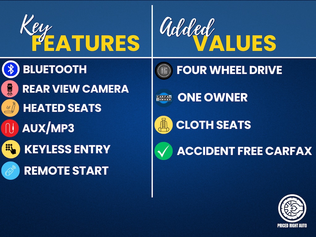 Priced Right Auto strives to provide our customers with a transparent & pressure free environment. The majority of our inventory is purchased from outside of the rust belt allowing us to offer only the cleanest possible vehicles that will look good for years to come (especially when combined with our available rust proofing package). Every vehicle gets a full 40 point safety inspection and any needed repairs are performed by our *ASE Certified Technicians in our full service center! Vehicles 10 years old & newer, with under 150k miles come with a FREE 3 Month 3,000 Mile POWERTRAIN WARRANTY *ON ELIGIBLE VEHICLES! **Cash or Finance** Let us put our financing sources to the test. We have over 20 lenders that help us offer a Guaranteed Credit Approval process! We offer full spectrum financing! Fill out your credit application in person or on our website and get approved today! Visit us at www.PRICEDRIGHTAUTO.org or call us today at 616-319-9825 to confirm vehicle availability and pricing. Come in and enjoy the Priced Right Auto difference! Check out all these great options Big Horn Level 2 Equipment Group (115V Auxiliary Power Outlet, 115V Auxiliary Rear Power Outlet, 2 USB Full Function/Charge Only Media Hub, 2nd Row In Floor Storage Bins, 400W Inverter, Air Conditioning ATC w/Dual Zone Control, Auto-Dimming Rear-View Mirror, Big Horn IP Badge, Black Premium Power Mirrors, Class IV Receiver Hitch, Dampened Tailgate, Foam Bottle Insert (Door Trim Panel), Glove Box Lamp, Heated Front Seats, Heated Steering Wheel, ParkSense Front/Rear Park Assist w/Stop, Power 4-Way Driver Lumbar Adjust, Power 8-Way Driver Seat, Power Adjustable Pedals, Radio: Uconnect 4 w/8.4" Display, Rear Dome w/On/Off Switch Lamp, Rear Power Sliding Window, Rear Window Defroster, Security Alarm, SiriusXM Satellite Radio, Sun Visors w/Illuminated Vanity Mirrors, and Universal Garage Door Opener), Quick Order Package 28Z Big Horn (Big Horn Badge), Sport Appearance Package (3 Rear Seat Head Restraints, 4 Way Front Headrests, Black Interior Accents, Body Color Door Handles, Body Color Front Bumper, Body Color Premium Power Mirrors, Body Color Rear Bumper w/Step Pads, Bucket Seats, Deluxe Cloth Bucket Seats, Front Seat Back Map Pockets, Full Length Floor Console, Grille Surround 1 Body Color Texture 2 Black, Manual Adjust 4-Way Front Passenger Seat, Rear 60/40 Folding Seat, and Sport Decal), 3.21 Rear Axle Ratio, 4-Wheel Disc Brakes, 48V Belt Starter Generator, 6 Speakers, ABS brakes, Air Conditioning, Alloy wheels, AM/FM radio, Brake assist, Bumpers: chrome, Cloth Bench Seat, Compass, Delay-off headlights, Driver door bin, Dual front impact airbags, Dual front side impact airbags, Electronic Stability Control, Front anti-roll bar, Front Center Armrest w/Storage, Front fog lights, Front reading lights, Front wheel independent suspension, Fully automatic headlights, GPS Antenna Input, Heated door mirrors, Illuminated entry, Leather steering wheel, Low tire pressure warning, Occupant sensing airbag, Outside temperature display, Overhead airbag, Overhead console, Panic alarm, ParkView Rear Back-Up Camera, Passenger door bin, Passenger vanity mirror, Power door mirrors, Power steering, Power windows, Radio data system, Radio: Uconnect 3 w/5" Display, Rear anti-roll bar, Rear seat center armrest, Rear step bumper, Remote keyless entry, Remote Start System, Speed control, Split folding rear seat, Steering wheel mounted audio controls, Tachometer, Telescoping steering wheel, Tilt steering wheel, Traction control, Trip computer, Variably intermittent wipers, Voltmeter, Wheels: 18" x 8" Cast-Aluminum Painted, and Wheels: 20" x 9" Aluminum Chrome Clad (WRK)