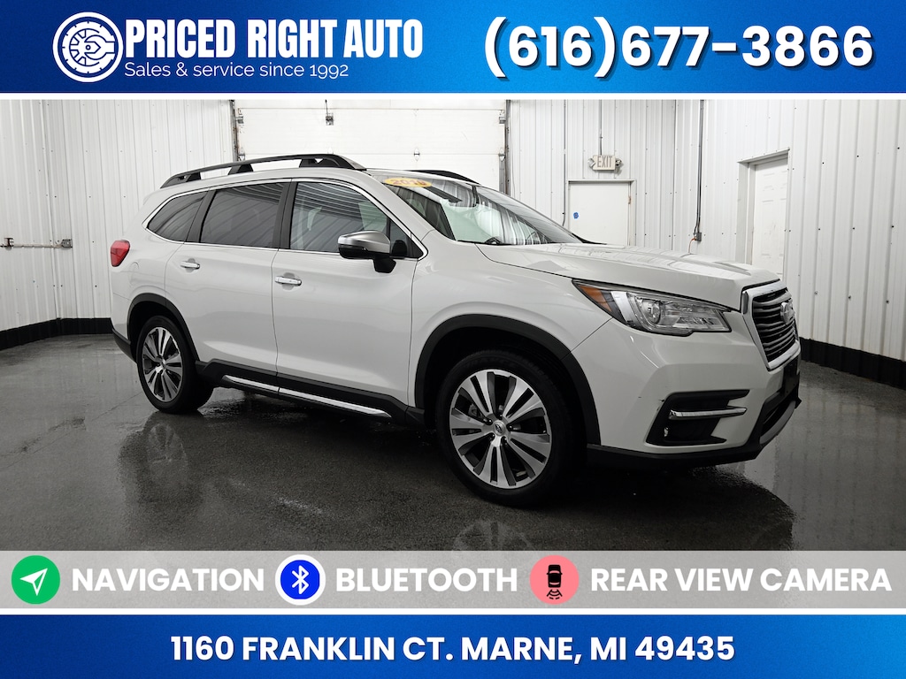 Priced Right Auto strives to provide our customers with a transparent & pressure free environment. The majority of our inventory is purchased from outside of the rust belt allowing us to offer only the cleanest possible vehicles that will look good for years to come (especially when combined with our available rust proofing package). Every vehicle gets a full 40 point safety inspection and any needed repairs are performed by our *ASE Certified Technicians in our full service center! Vehicles 10 years old & newer, with under 150k miles come with a FREE 3 Month 3,000 Mile POWERTRAIN WARRANTY *ON ELIGIBLE VEHICLES! **Cash or Finance** Let us put our financing sources to the test. We have over 20 lenders that help us offer a Guaranteed Credit Approval process! We offer full spectrum financing! Fill out your credit application in person or on our website and get approved today! Visit us at www.PRICEDRIGHTAUTO.org or call us today at 616-677-3866 to confirm vehicle availability and pricing. Come in and enjoy the Priced Right Auto difference! Check out all these great options Standard Model, 14 Speakers, 20" Alloy Wheels, 3rd row seats: bench, 4-Wheel Disc Brakes, ABS brakes, Aero Crossbar Set, Air Conditioning, All-Weather Floor Liners, Alloy wheels, AM/FM radio: SiriusXM, Auto High-beam Headlights, Auto-Dimming Exterior Mirror w/Approach Light, Auto-dimming Rear-View mirror, Automatic temperature control, Axle Ratio: 4.44, Brake assist, Bumpers: body-color, Cargo Tray, CD player, Compass, Delay-off headlights, Driver door bin, Driver vanity mirror, Dual front impact airbags, Dual front side impact airbags, Electronic Stability Control, Emergency communication system: STARLINK Safety and Security, Exterior Parking Camera Rear, Four wheel independent suspension, Front anti-roll bar, Front Bucket Seats, Front Center Armrest, Front dual zone A/C, Front fog lights, Front reading lights, Fully automatic headlights, Garage door transmitter: HomeLink, harman/kardon® Speakers, Heated & Ventilated Front Bucket Seats, Heated door mirrors, Heated front seats, Heated rear seats, Heated steering wheel, Illuminated entry, Knee airbag, Low tire pressure warning, Map & Reading Lights LED Upgrade - 6 Bulb Kit, Memory seat, Navigation System, Occupant sensing airbag, Outside temperature display, Overhead airbag, Overhead console, Panic alarm, Passenger door bin, Passenger vanity mirror, Perforated Leather-Trimmed Upholstery, Power door mirrors, Power driver seat, Power Liftgate, Power moonroof, Power passenger seat, Power steering, Power windows, Radio data system, Radio: Subaru STARLINK 8.0" Multimedia Nav System, Rain sensing wipers, Rear air conditioning, Rear anti-roll bar, Rear reading lights, Rear window defroster, Rear window wiper, Remote keyless entry, Roof rack: rails only, Security system, Speed control, Split folding rear seat, Spoiler, STARLINK/Apple CarPlay/Android Auto, Steering wheel mounted audio controls, Tachometer, Telescoping steering wheel, Tilt steering wheel, Traction control, Trip computer, Turn signal indicator mirrors, Variably intermittent wipers, and Ventilated front seatS.