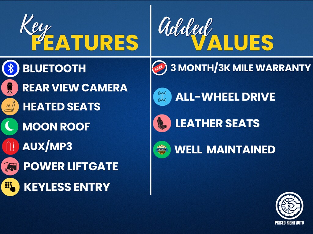 Priced Right Auto strives to provide our customers with a transparent & pressure free environment. The majority of our inventory is purchased from outside of the rust belt allowing us to offer only the cleanest possible vehicles that will look good for years to come (especially when combined with our available rust proofing package). Every vehicle gets a full 40 point safety inspection and any needed repairs are performed by our *ASE Certified Technicians in our full service center! Vehicles 10 years old & newer, with under 150k miles come with a FREE 3 Month 3,000 Mile POWERTRAIN WARRANTY *ON ELIGIBLE VEHICLES! **Cash or Finance** Let us put our financing sources to the test. We have over 20 lenders that help us offer a Guaranteed Credit Approval process! We offer full spectrum financing! Fill out your credit application in person or on our website and get approved today! Visit us at www.PRICEDRIGHTAUTO.org or call us today at 616-319-9825 to confirm vehicle availability and pricing. Come in and enjoy the Priced Right Auto difference! Check out all these great options All-Weather Pkg & BSD & Keyless Acc & Pwr Rr Gate (Blind Spot Detection w/Rear Cross Traffic Alert, Heated Exterior Mirrors, Heated Front Seats, Keyless Access w/Push-Button Start, Power Rear Gate, and Windshield Wiper De-Icer), Popular Package #1 (All-Weather Floor Liners, Auto-Dimming Exterior Mirror w/Approach Lighting, Auto-Dimming Mirror w/Compass & HomeLink, Cargo Tray, and Rear Bumper Cover), 3.70 Axle Ratio, 4-Wheel Disc Brakes, 6 Speakers, ABS brakes, Air Conditioning, Alloy wheels, AM/FM radio: SiriusXM, Automatic temperature control, Brake assist, Bumpers: body-color, Cargo Net, CD player, Cloth Upholstery, Driver door bin, Driver vanity mirror, Dual front impact airbags, Dual front side impact airbags, Electronic Stability Control, Emergency communication system: STARLINK Safety and Security, Exterior Parking Camera Rear, Four wheel independent suspension, Front anti-roll bar, Front Bucket Seats, Front Center Armrest, Front reading lights, Fully automatic headlights, Illuminated entry, Knee airbag, Low tire pressure warning, Occupant sensing airbag, Outside temperature display, Overhead airbag, Overhead console, Panic alarm, Passenger door bin, Passenger vanity mirror, Power door mirrors, Power driver seat, Power moonroof: Panoramic, Power steering, Power windows, Radio data system, Radio: Subaru Starlink 6.5" Multimedia Plus System, Rear anti-roll bar, Rear seat center armrest, Rear Seatback Protector, Rear window defroster, Rear window wiper, Remote keyless entry, Roof rack: rails only, Security system, Speed control, Speed-sensing steering, Split folding rear seat, Spoiler, STARLINK/Apple CarPlay/Android Auto, Steering wheel mounted audio controls, Tachometer, Telescoping steering wheel, Tilt steering wheel, Traction control, Trip computer, Variably intermittent wipers, and Wheels: 17" x 7.0J Black Machine Finish AlloY.