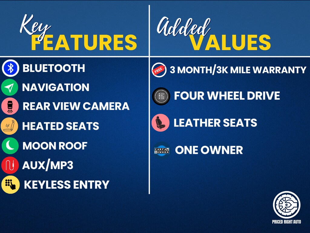 Priced Right Auto strives to provide our customers with a transparent & pressure free environment. The majority of our inventory is purchased from outside of the rust belt allowing us to offer only the cleanest possible vehicles that will look good for years to come (especially when combined with our available rust proofing package). Every vehicle gets a full 40 point safety inspection and any needed repairs are performed by our *ASE Certified Technicians in our full service center! Vehicles 10 years old & newer, with under 150k miles come with a FREE 3 Month 3,000 Mile POWERTRAIN WARRANTY *ON ELIGIBLE VEHICLES! **Cash or Finance** Let us put our financing sources to the test. We have over 20 lenders that help us offer a Guaranteed Credit Approval process! We offer full spectrum financing! Fill out your credit application in person or on our website and get approved today! Visit us at www.PRICEDRIGHTAUTO.org or call us today at 616-319-9825 to confirm vehicle availability and pricing. Come in and enjoy the Priced Right Auto difference! Check out all these great options 4WD, Graphite Artificial Leather, 17" x 7.0" 6-Spoke Alloy Wheels, 3.727 Axle Ratio, 4-Wheel Disc Brakes, 8 Speakers, ABS brakes, Air Conditioning, Alloy wheels, AM/FM radio: SiriusXM, Anti-whiplash front head restraints, Auto-Dimming Rear-View Mirror, Auto-dimming Rear-View mirror, Body Color Heated Mirrors, Brake assist, Bumpers: body-color, CD player, Compass, Driver door bin, Driver vanity mirror, Dual front impact airbags, Dual front side impact airbags, Electronic Stability Control, Emergency communication system: Safety Connect, Exterior Parking Camera Rear, Front anti-roll bar, Front Bucket Seats, Front Center Armrest, Front fog lights, Front reading lights, Front wheel independent suspension, Garage Door Opener, Garage door transmitter: HomeLink, Heated door mirrors, Heated Front Bucket Seats, Heated front seats, Illuminated entry, Knee airbag, Leather Shift Knob, Leather steering wheel, Low tire pressure warning, Moonroof w/Tilt Up & Slide, Navigation System, Occupant sensing airbag, Outside temperature display, Overhead airbag, Overhead console, Panic alarm, Passenger door bin, Passenger vanity mirror, Power door mirrors, Power driver seat, Power passenger seat, Power steering, Power windows, Radio: Entune Premium Audio w/Navigation, Rear anti-roll bar, Rear seat center armrest, Rear window defroster, Rear window wiper, Remote keyless entry, Roof rack: rails only, Security system, Softex Synthetic Leather Seat Trim, Speed control, Speed-sensing steering, Split folding rear seat, Spoiler, Steering wheel mounted audio controls, Tachometer, Telescoping steering wheel, Tilt steering wheel, Traction control, Trip computer, Turn signal indicator mirrors, and Variably intermittent wiperS.